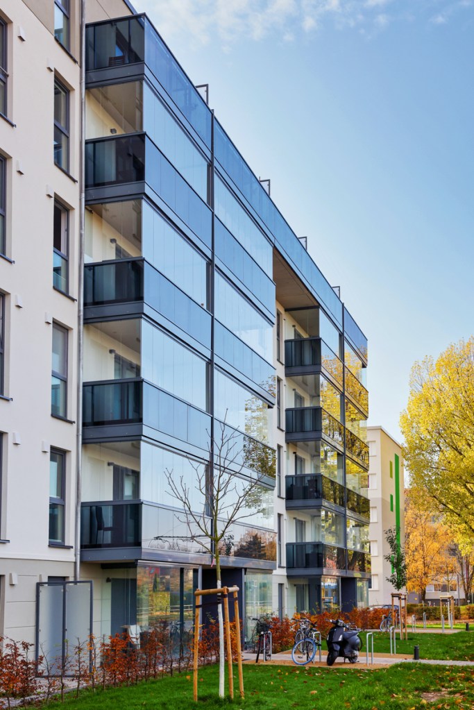 Balkonfassaden, Geländer und Balkonverglasungen üben nicht nur großen Einfluss auf das „Gesicht“ eines Gebäudes aus – sie entkoppeln Innen- und Außenbereich auch akustisch und thermisch voneinander. Grund genug, sich als Planer und Architekt intensiver mit den transparenten Gestaltungsmöglichkeiten auseinanderzusetzen. Mit dem flexibel zusammenstellbaren Balkonfassadensystem des aus Finnland stammenden Herstellers Lumon lassen sich für Mehrfamilienhäuser erstaunlich unterschiedliche Architekturbilder erstellen – sowohl bei Neubau als auch Sanierung.
