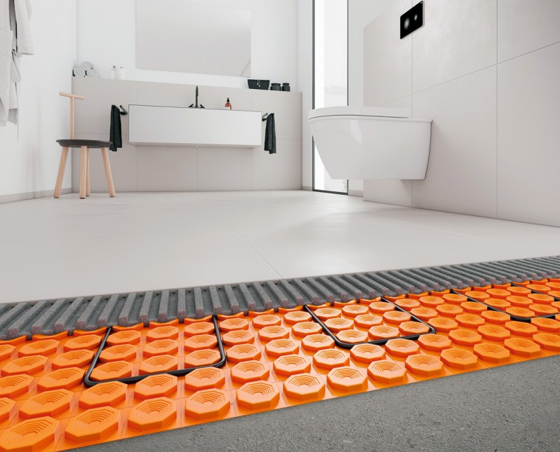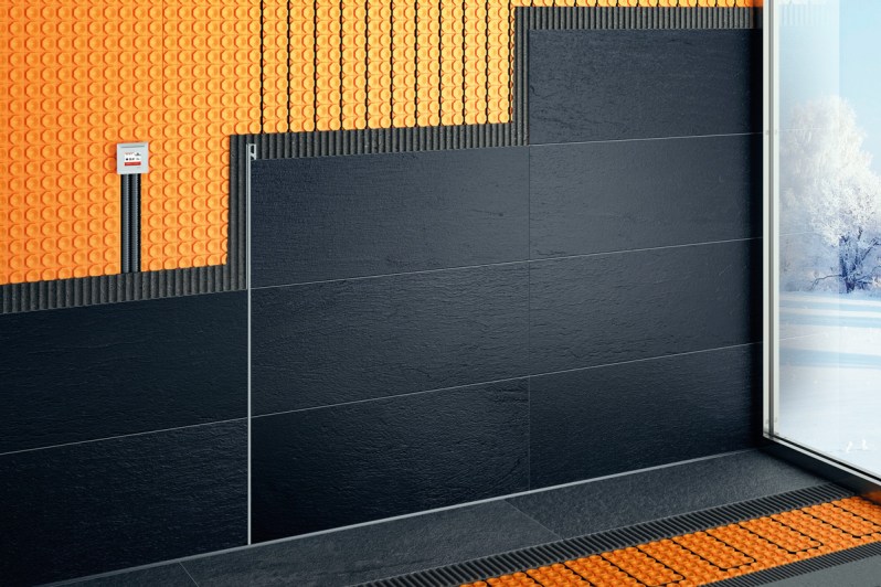 Als Ergänzung zu einer wassergeführten Fußbodenheizung (oder in manchen Fällen als komplette Alternative) empfiehlt sich die elektrische Boden- und Wandheizung Schlüter-DITRA-HEAT-E. Auch dieses System zeichnet sich durch minimale Aufbauhöhe und schnelle Reaktionsfähigkeit aus. Neben ihrer primären Aufgabe als sparsame Heizung fungiert sie zusätzlich auch als Verbundabdichtung und -entkopplung für den Fliesen- oder Natursteinbelag. Da die Heizleitungen unmittelbar unterhalb des Belags geführt werden, kommt die Wärme direkt, schnell und nahezu verlustfrei an. In Kombination mit einer programmierbaren Zeitsteuerung eröffnet die Schlüter-DITRA-HEAT-E somit die attraktive Möglichkeit, einzelne Bereiche präzise zu erwärmen und dadurch gezielt für Komfortzonen zu sorgen.