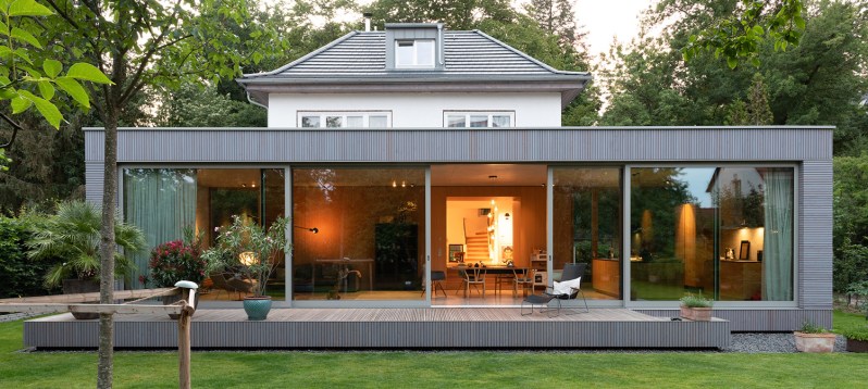 Das sieht nicht nur toll aus, sondern bildet auch einen interessanten Kontrast zu älteren Bestandsgebäuden. Insbesondere das Zusammenspiel zwischen einem alten Haus aus Mauerwerk und einem Pavillon aus Beton verleiht einer bestehenden Immobilie einen neuen und außergewöhnlichen Charakter.