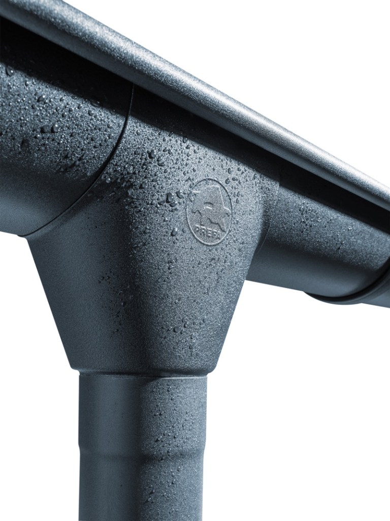 Übrigens: Dank der hochwertigen Oberflächenveredelung P.10 bleibt die Beschichtung selbst nach vielen Jahren funktionstüchtig und schön. Weiteres Plus: Die Rinnen und Rohre aus widerstandsfähigem Aluminium geben keine schädlichen Schwermetalle ab, die mit dem Niederschlag ins Abwasser gelangen könnten – das freut die Umwelt!