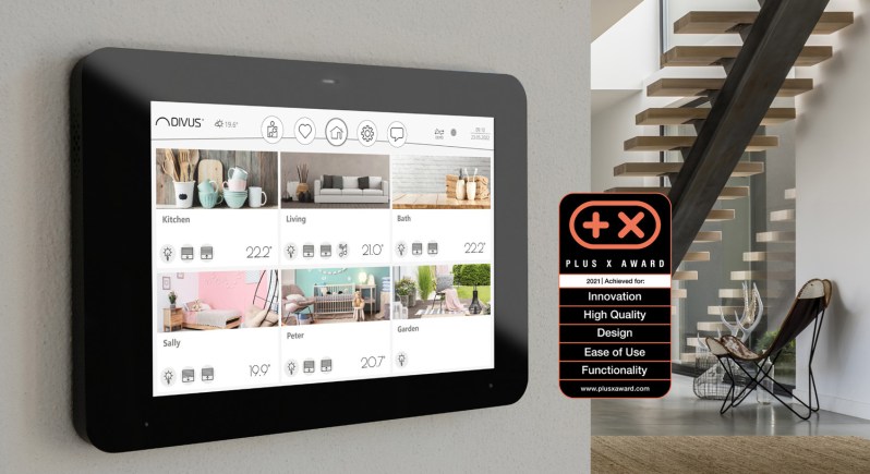 Mit der DIVUS VISION hat der Hersteller eine Visualisierungsoberfläche erschaffen, die einfach in der täglichen Handhabung und Steuerung ist. Licht, Beschattung, Temperatur, Musik und Alarme können für die einzelnen Wohnräume einfach über das 8-Zoll-Touchpanel kontrolliert und gesteuert werden.