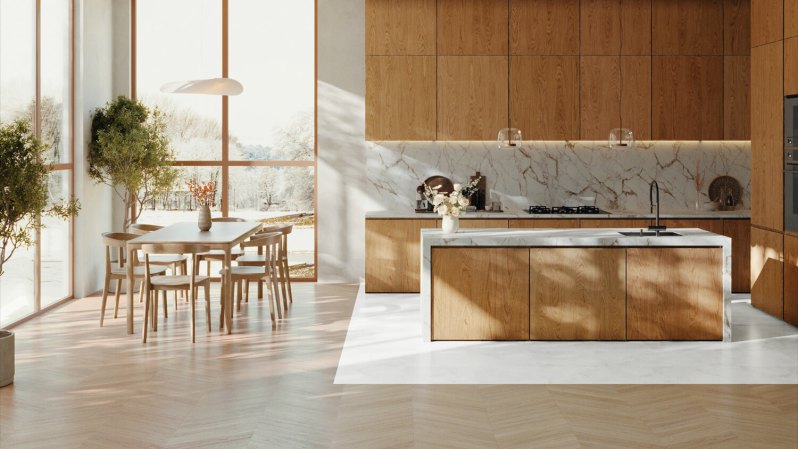Die Chevron-Stäbe der Produktlinie Trendtime 10 und die Fliesen der Produktlinie Trendtime 5, die nach dem Mix & Match-Prinzip kreativ kombiniert werden können, setzen ästhetische Akzente im Wohnraum.
